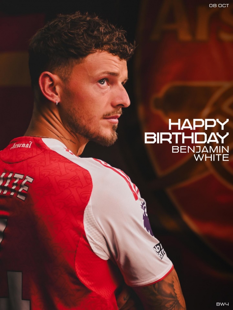 阿森纳官方社媒晒出本-怀特的寿辰海报,配文:“寿辰惬心,本-怀特。”