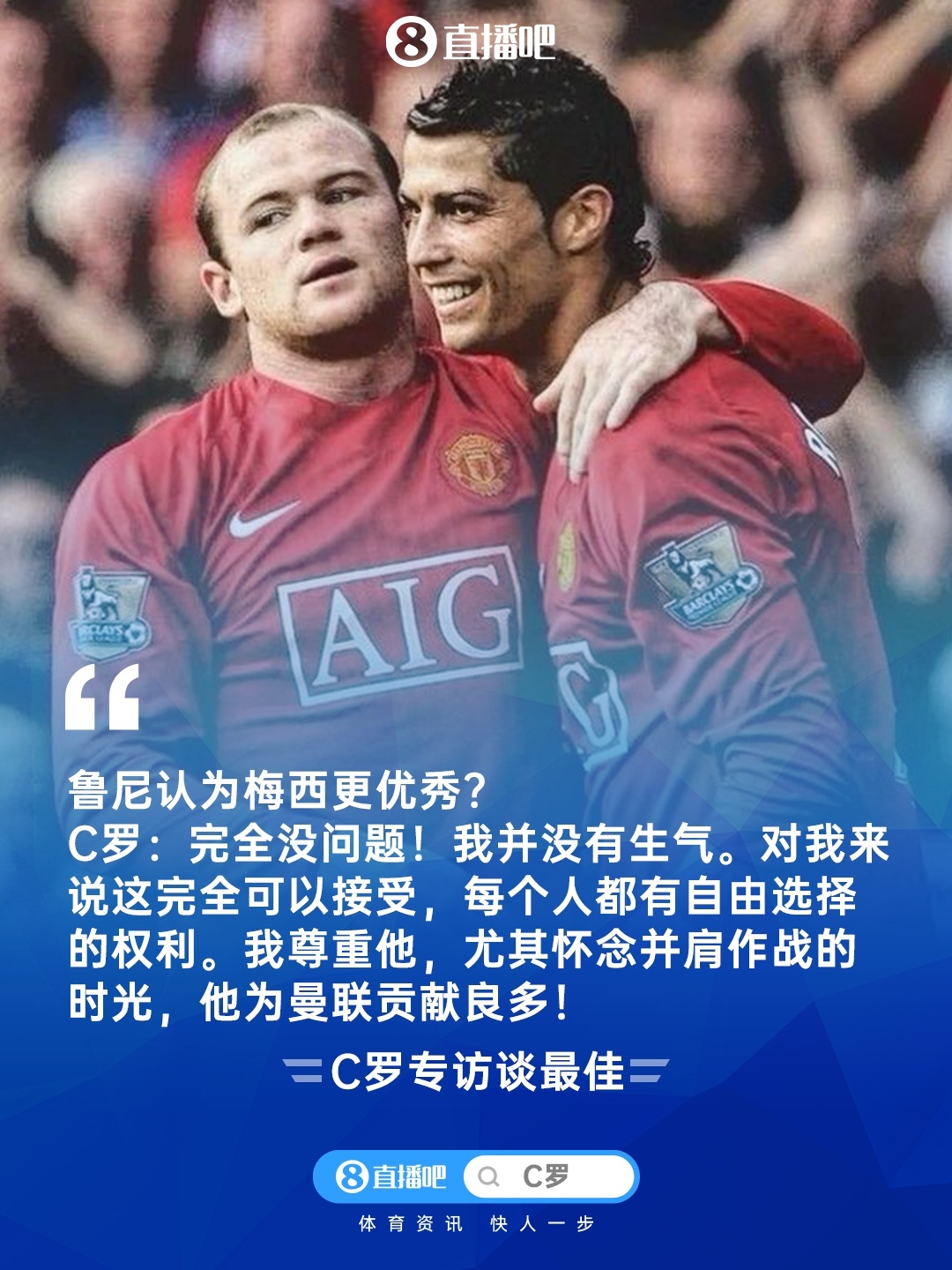 鲁尼称梅西更好?C罗:透澈没问题,我不不满,我尊重鲁尼的经受