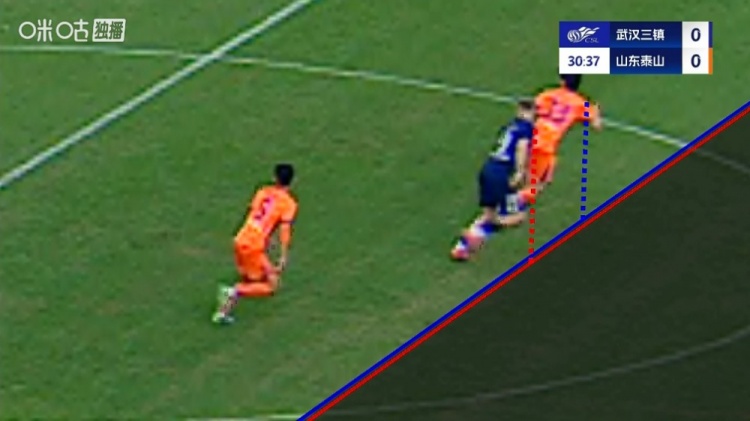 11月22日讯 中超第30轮,武汉三镇主场对阵山东泰山,比赛第30分钟,图多列接长传直入禁区抢射破门,裁判经VAR阐发判越位。