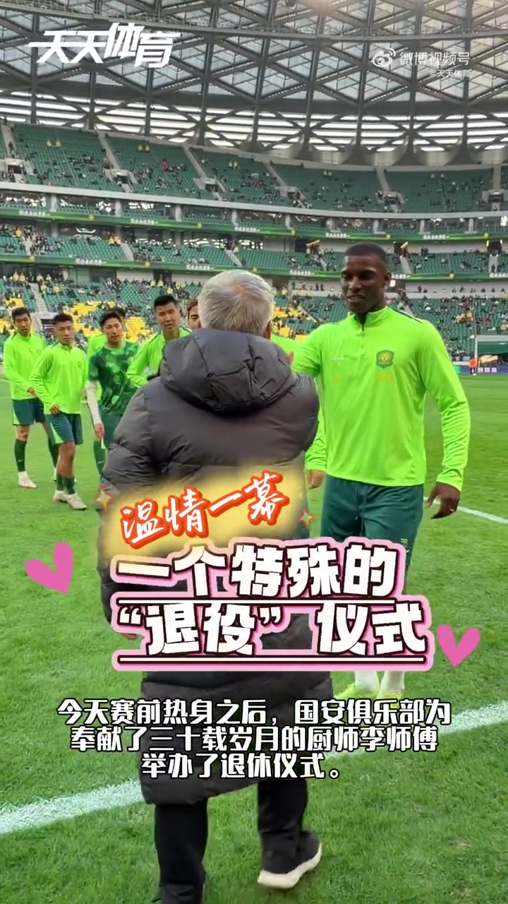 11月22日讯 中超收官战,北京国安主场对阵梅州客家。赛前热死后,国安俱乐部举行了一个非凡的“退役”典礼。