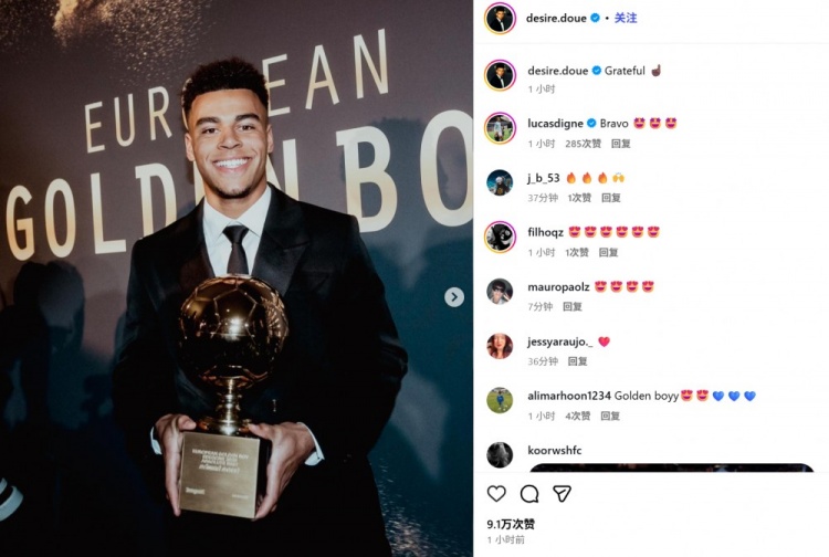 他也在本日通过社媒晒出我方的领奖照,并配文:“谢意!”随后,他颠倒撰文:“获得金童奖是我的走时!”
