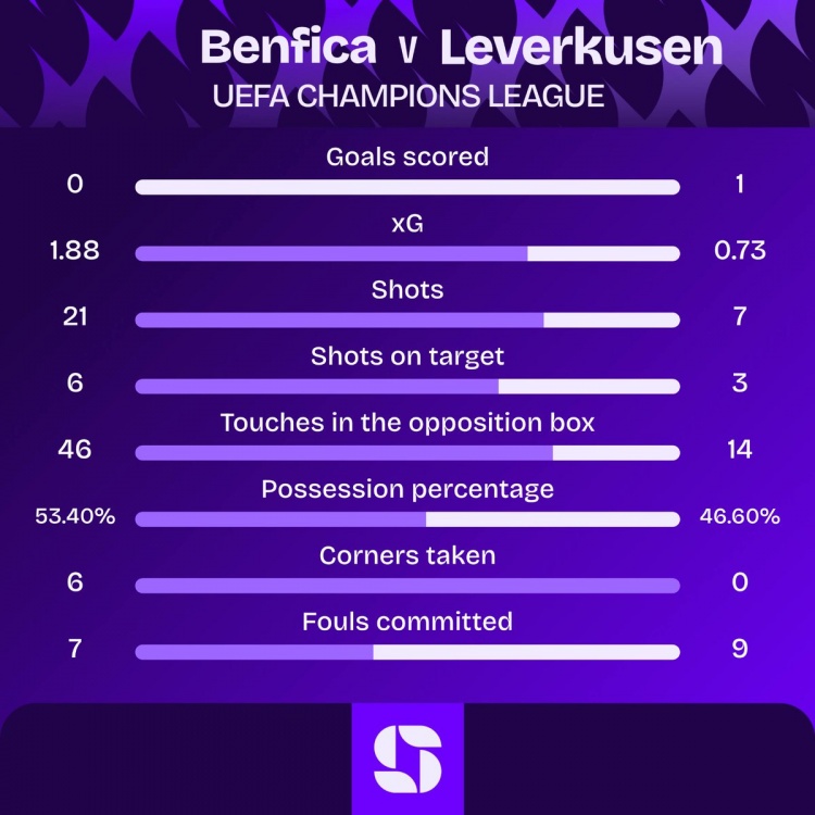 11月6日讯 欧冠联赛阶段第四轮比赛,本菲卡主场0-1不敌勒沃库森。