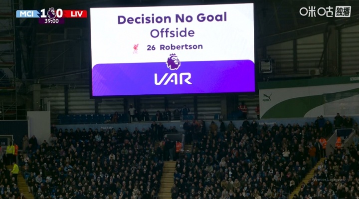 11月10日讯 曼城vs利物浦第38分钟,范戴克头球破门,但裁判判罚无效!
