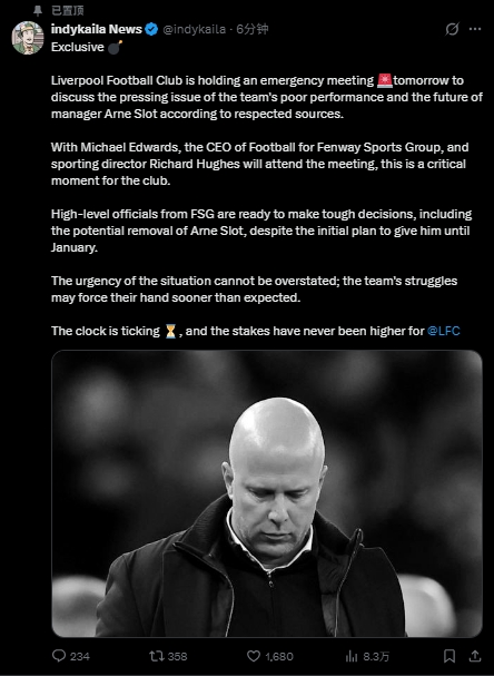“独家爆料:据可靠音信源表示,利物浦将于未来召开蹙迫会议,专题接洽球队近期厄运的发扬以及主磨真金不怕火斯洛特的将来。
