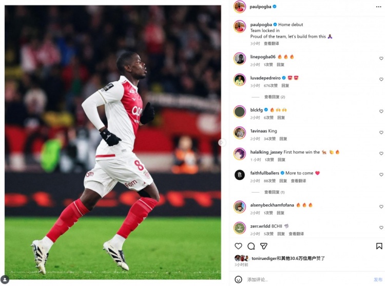 本场比赛博格巴在终末时代替补登场迎来主场首秀,赛后他也在社媒晒出本场相片,配文写谈:“主场首秀,球队景况出色,为团队感到自豪。让咱们无间下去!”