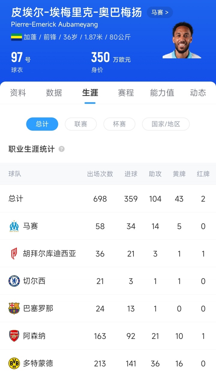 本年夏窗解放身追思马赛后,奥巴梅扬本赛季7场比赛还是孝敬了4粒进球和2次助攻。当今36岁的奥巴梅扬德回身价为350万欧元,而在2018年巅峰时辰,效用于阿森纳的奥巴梅扬身价最高曾达到7500万欧元。