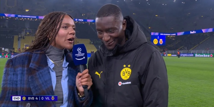 在多特4-0慑服比利亚雷亚尔之后,吉拉西吸收亚马逊电视台记者卡亚娜·弗里曼的采访。当记者用法语发问前两个问题时,这位几内亚弓手也以法语作答。(注:几内亚官方言语是法语)