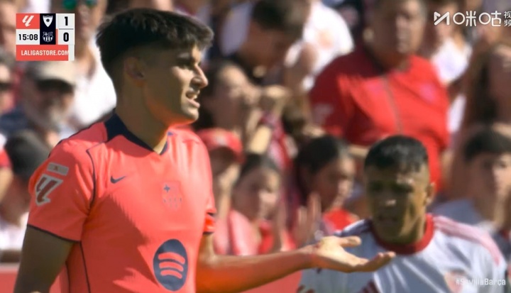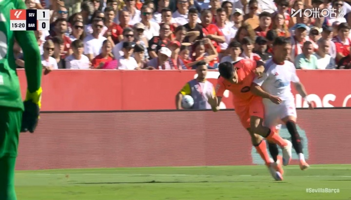 10月05日讯 塞维vs巴萨第16分钟,巴萨左后卫马丁左路把稳中放倒敌手,吃到一张黄牌。