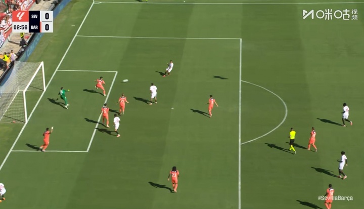10月05日讯 塞维利亚vs巴萨第3分钟,塞维利亚左路紧迫横传,后点的桑切斯身旁无东说念主盯防,随后他的敲门被门前的马丁封堵出界。