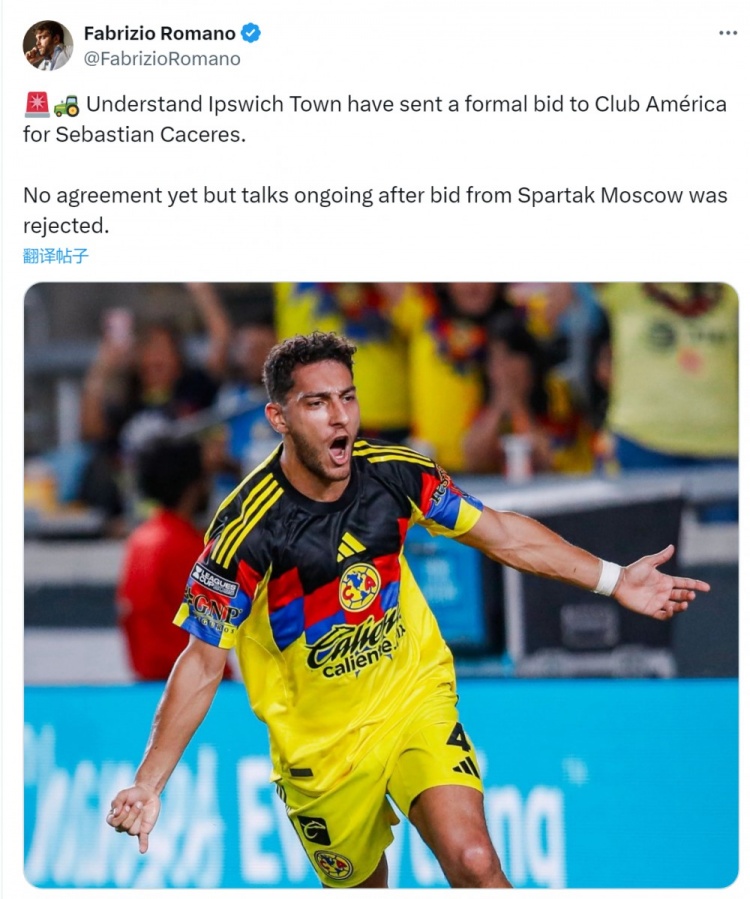 罗马诺深远,伊普斯维奇对遵守于墨西哥好意思洲的乌拉圭中卫卡塞雷斯感兴致,依然向墨西哥好意思洲提交发扬报价。